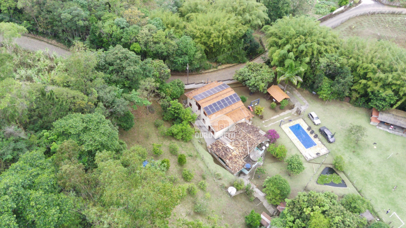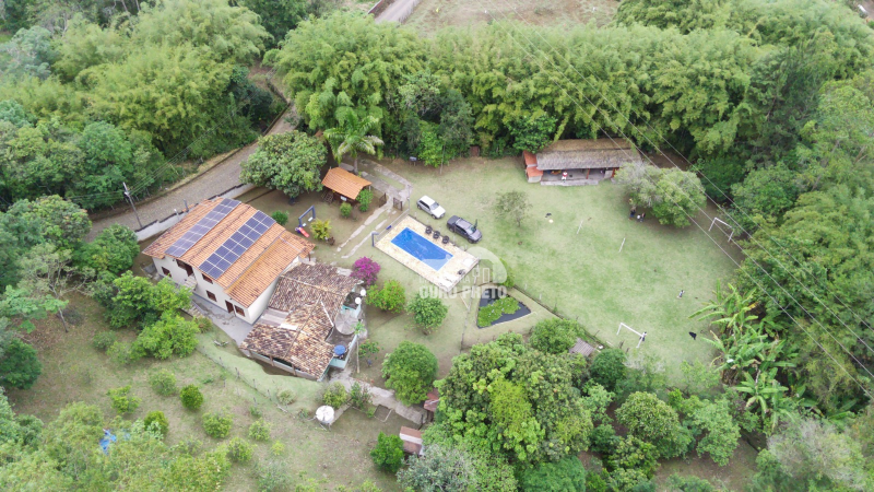A propriedade oferece ainda diversas opções de lazer e conveniência, incluindo campo de futebol, piscina com poço de peixes, cabana de madeira, pomar com grande variedade de frutas, garagem ampla e sistema de energia com placa solar.